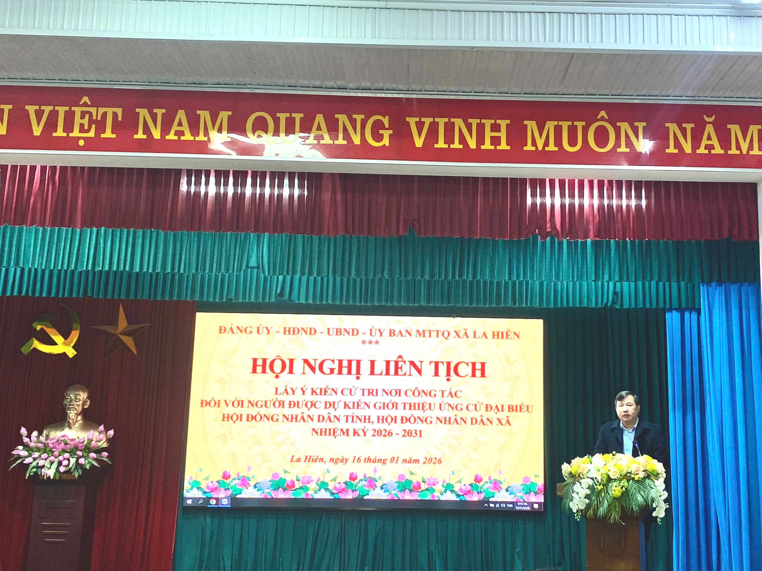 Sáng ngày 16/01/2026, tại Nhà văn hóa xã La Hiên, Đảng ủy , HĐND, UBND, UBMTTQ xã đã tổ chức Hội nghị lấy ý kiến cử tri nơi công tác đối với người được dự kiến giới thiệu ứng cử đại biểu Hội đồng nhân dân tỉnh và đại biểu HĐND xã La Hiên, nhiệm kỳ 2026 – 2031.
